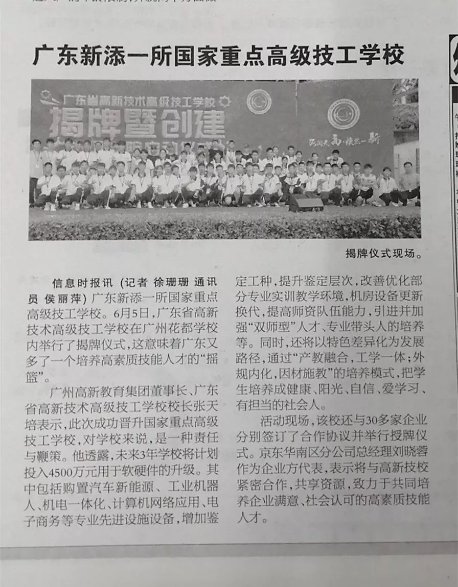 昨天 6月5日,廣東省高新技術高級技工學校舉行升高揭牌儀式(戳這里,精彩回顧),廣東省人社廳領導、評估專家、兄弟院校、校企代表及高新技校近千名師生共同參與、共同見證了廣東省又一所培養(yǎng)高素質技能人才的“搖籃”的誕生。