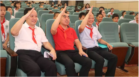 大隊輔導員宣布122名一年級小學生被批準加入中國少年先鋒隊,正式成為光榮的中國少年先鋒隊隊員,高年級的同學們做為老隊員為新隊員們佩戴上了鮮艷的紅領巾,當鮮艷的紅領巾佩帶在他們的胸前時,新隊員的臉上都洋溢著激動與自豪。