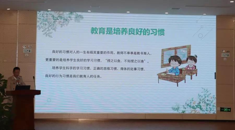 隨后,張校長還做了精彩的教育講座,他認為教育是一種期待、一種固守、一種耐心、一份信任、一份寬容。教育是培養(yǎng)良好的習慣,教育是一種服務。