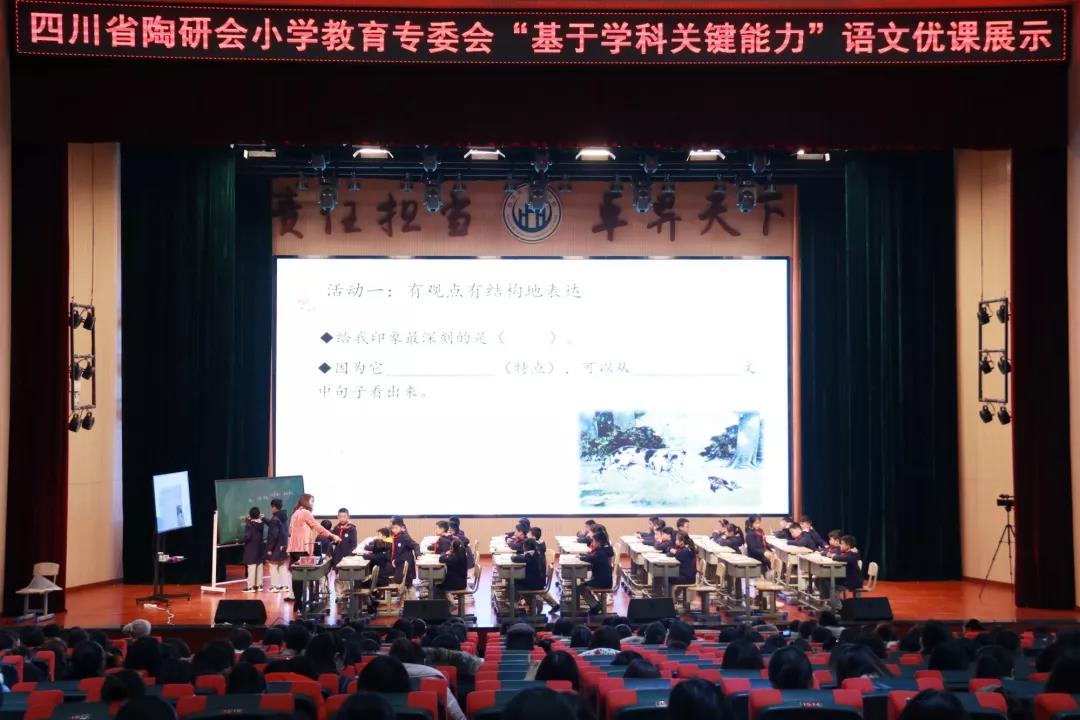 2019年11月28日—29日,由四川省陶行知研究會、新華文軒出版?zhèn)髅焦煞萦邢薰尽⒆载暿薪逃腕w育局主辦,四川省陶行知研究會小學(xué)教育專業(yè)委員會、新華文軒出版?zhèn)髅焦煞萦邢薰靖豁樂止?、富順縣教育和體育局、自貢衡川實(shí)驗(yàn)學(xué)校承辦的四川省陶研會小學(xué)教育專業(yè)委員會“基于學(xué)科關(guān)鍵能力”的優(yōu)課展示會、四川省陶行知研究會小學(xué)專業(yè)委員會第二屆教師年會專家報告會在我校隆重舉行。