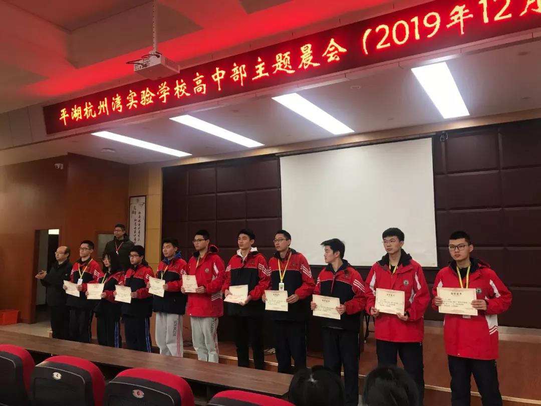 小報(bào)告廳內(nèi),“高一(2)班是一個(gè)團(tuán)結(jié)拼搏,勤奮樂(lè)學(xué),愛(ài)好和平,自強(qiáng)不息的班級(jí)。”隨著主持人陳昕奕、胡怡馨同學(xué)的介紹,一周一次的平湖杭州灣實(shí)驗(yàn)學(xué)校高中部晨會(huì)開(kāi)始了。在三十余分的晨會(huì)上,有高一(2)班的班級(jí)介紹,有劉廣興副校長(zhǎng)對(duì)授獎(jiǎng)班級(jí)和寢室的名單宣布,有張朝主任對(duì)成績(jī)優(yōu)秀學(xué)生的頒獎(jiǎng)儀式,有王域主任組織的十大學(xué)星、優(yōu)秀班干部、優(yōu)秀課代表、自律模范、道德模范、優(yōu)秀學(xué)生會(huì)成員、優(yōu)秀宿舍成員的民主投票。大會(huì)在緊張而有秩序高效地進(jìn)行著。