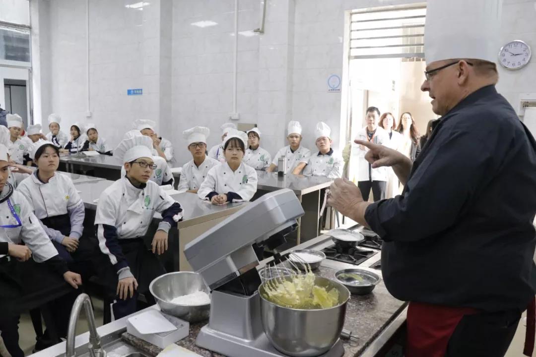 12日上午,包括澳大利亞政府貿(mào)易投資委員會(huì)商務(wù)官員周覓瓊、EHI校長(zhǎng)Mr.Stuart、首席運(yùn)營(yíng)官M(fèi)s.Bubpa、亞洲區(qū)域市場(chǎng)經(jīng)理周敏怡、中國(guó)項(xiàng)目經(jīng)理歐陽(yáng)云在內(nèi)的一行來(lái)賓便早早抵達(dá)我校,在我校領(lǐng)導(dǎo)及老師的陪同下參觀了烹飪專業(yè)各大實(shí)訓(xùn)室。