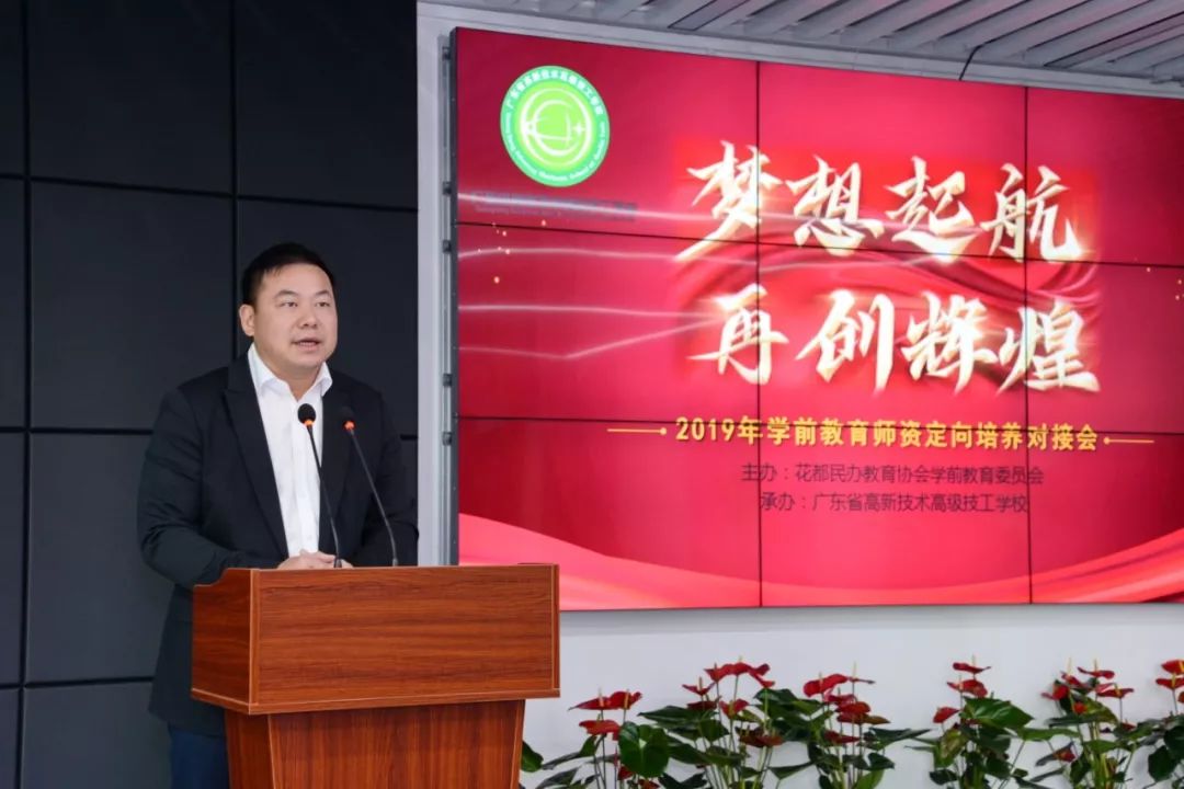 會(huì)上,花都區(qū)民辦教育協(xié)會(huì)會(huì)長(zhǎng)、廣東省高新技術(shù)高級(jí)技工學(xué)校校長(zhǎng)張?zhí)炫嘧鞒鼍拾l(fā)言,首先對(duì)簽約表示祝賀。作為協(xié)會(huì)張會(huì)長(zhǎng),他指出此次對(duì)接會(huì)正是為會(huì)員單位提供了一次重要的人力資源儲(chǔ)備;同時(shí),張校長(zhǎng)更深入地向來(lái)賓們介紹了學(xué)校幼兒教育專(zhuān)業(yè)的情況以及對(duì)高新學(xué)子的培養(yǎng)歷程。