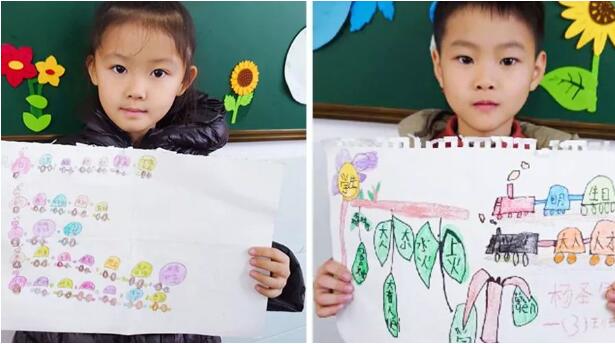 生字和簡筆畫的完美結(jié)合:由字組詞,由詞成句。瞧,一(1)班的小可愛們用自己的巧手給我們的生字寶寶畫上了一個個漂亮的小房子呢!