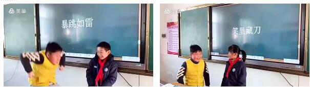 你來比劃我來猜,瞧,四(3)班的寶貝表演“羊入虎口”,可真是聲情并茂,男主角調(diào)皮地張開大嘴,小搭檔迅速就猜出了答案,真是默契十足哇!