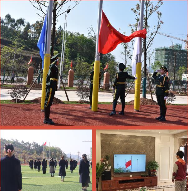 春光明媚,花開(kāi)正好,旗手在學(xué)校操場(chǎng)上將鮮艷的五星紅旗冉冉升起,全體師生起立,高唱國(guó)歌,隔空向國(guó)旗行注目禮。