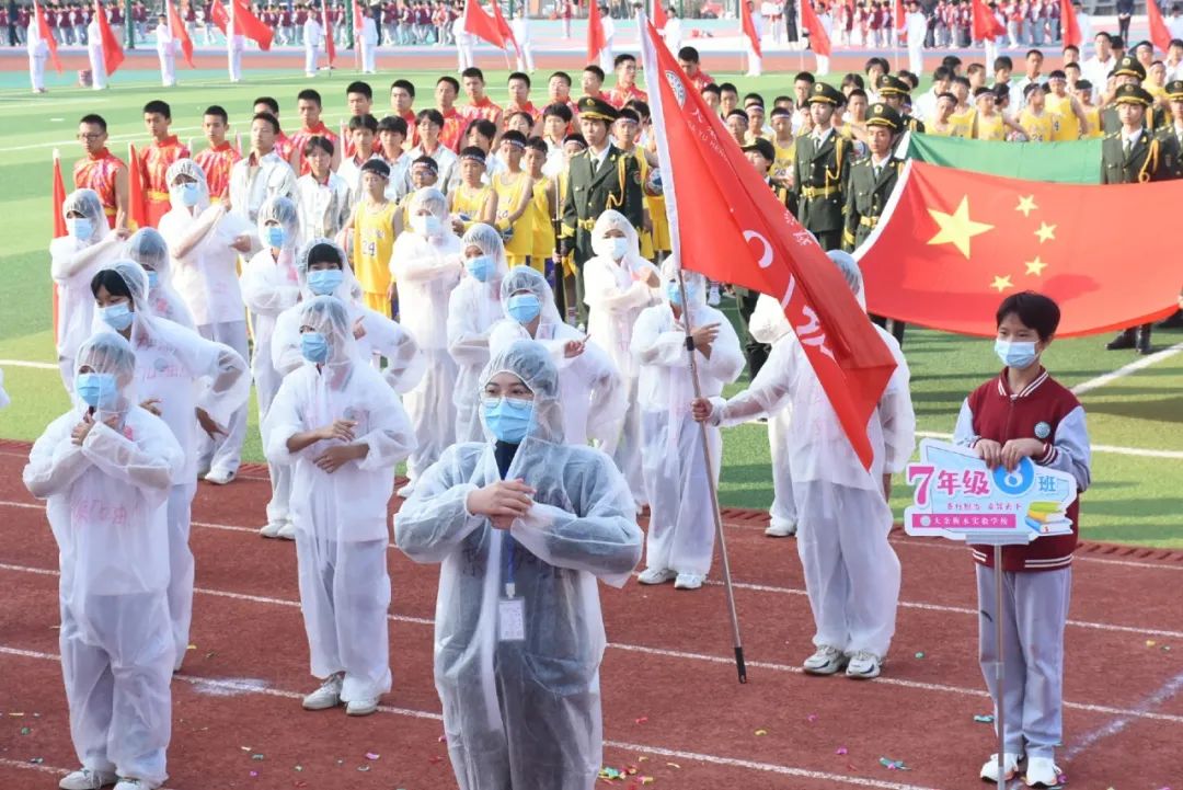 各班級代表隊也絲毫不輸陣!他們踏著運動員進行曲,賣著鏗鏘有力的步伐,以飽滿的精神狀態(tài),列隊走過主席臺。