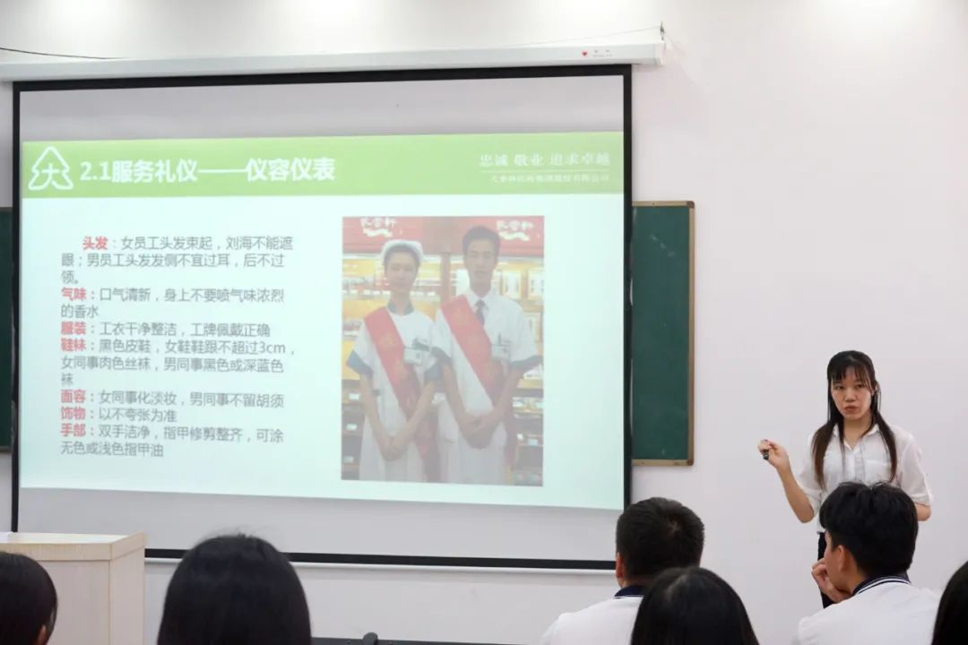 是我校與大參林合作的創(chuàng)新模式,大參林在廣州共有5所合作職校,其中高新醫(yī)藥是唯一一所合作的中職學(xué)校。企業(yè)會(huì)在藥劑專業(yè)學(xué)生第二學(xué)年的時(shí)候來校挑選人才,對面試篩選進(jìn)入訂單班的學(xué)生提前培養(yǎng),定期授課、定期考核。到學(xué)生第三年實(shí)習(xí)期,就可以直接進(jìn)入大參林旗下門店實(shí)習(xí)。