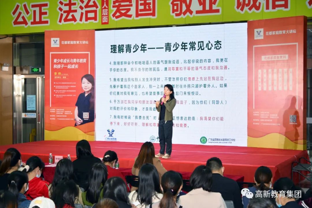 11月28日,由花都區(qū)教育局主辦,經(jīng)花都區(qū)文明辦、花都團區(qū)委、花都區(qū)婦聯(lián)、花都區(qū)關工委、廣州市家庭教育促進會等單位的全力支持,廣州高新教育集團旗下學校廣東省高新技術高級技工學校承辦的花都家庭教育大講壇第4講“青少年成長與青年教育 與孩子一起成長”在花都區(qū)南華教育城正式開講。