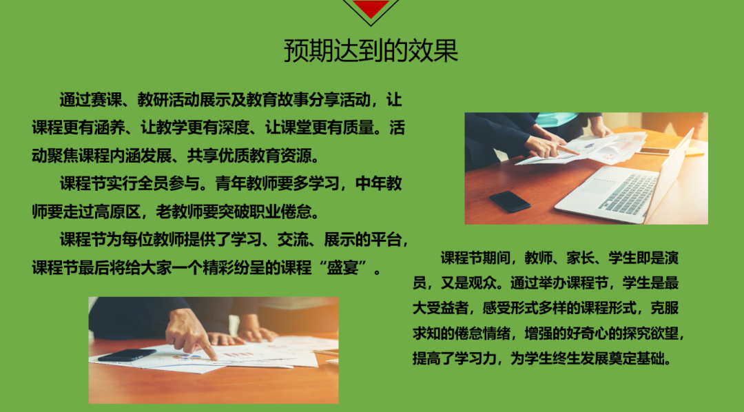 吳燕校長首先從課程節(jié)的意義出發(fā),讓大家明確了課程節(jié)開展的重要意義。然后從國家級課程展示、地方課程展示及校本課程展示、大課堂展示、優(yōu)秀教研活動展示、班主任班會課比賽、家長講堂、優(yōu)秀校本課程匯展及匯演等七個方面進行了具體的闡述,讓大家找到了落實的方向。最后吳燕校長對本次課程節(jié)的圓滿進行表達了衷心的祝愿和滿滿的期待。她表示:本次課程節(jié)為每位教師提供了學習、交流、展示的平臺,最后將給大家一個精彩紛呈的課程“盛宴”。課程節(jié)期間,教師、家長、學生即是演員,又是觀眾。通過舉辦課程節(jié),學生是最大受益者,感受形式多樣的課程形式,克服求知的倦怠情緒,增強的好奇心的探究欲望,提高了學習力,為學生終生發(fā)展奠定基礎(chǔ)。