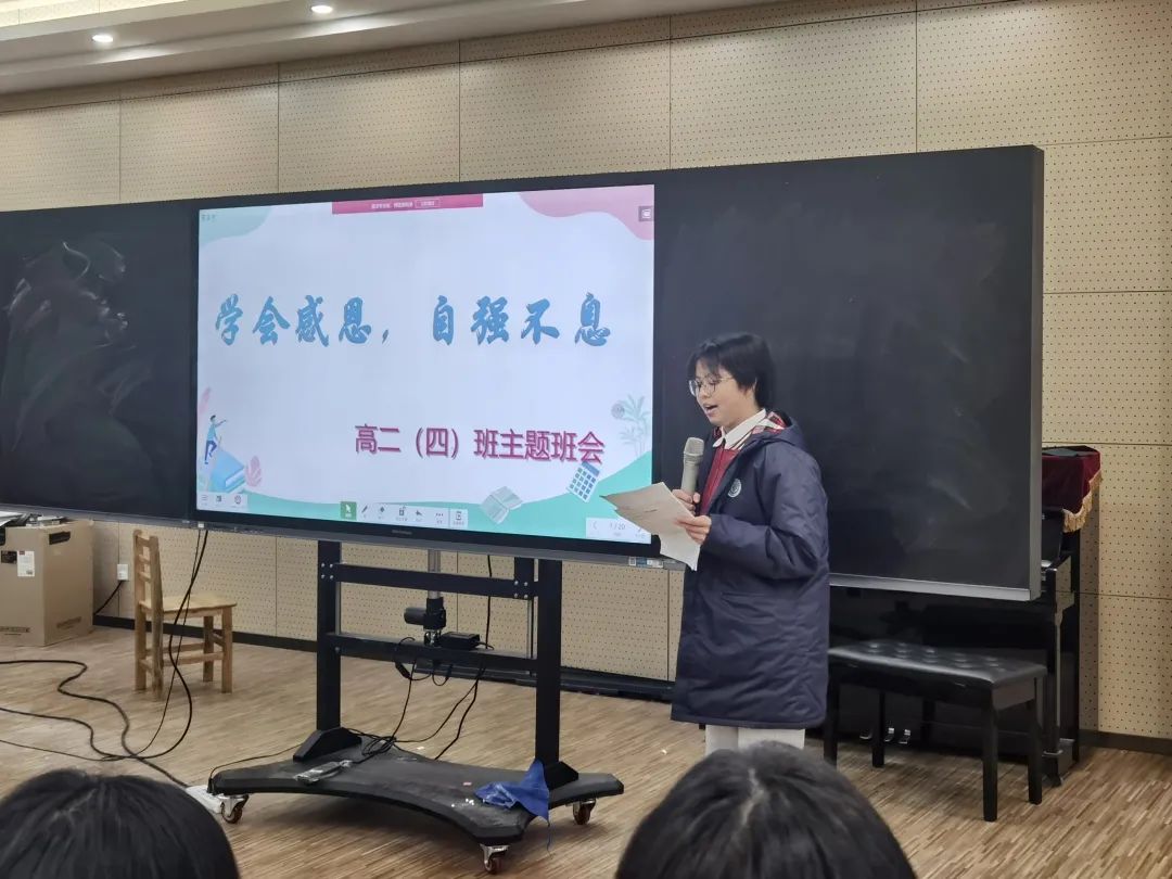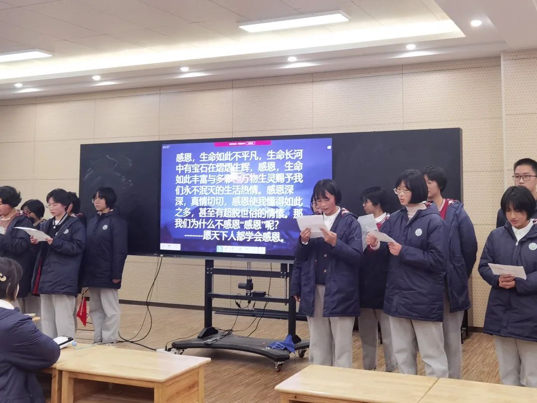 整個班會,由學(xué)生組織、安排,中間不僅有學(xué)生們對“感恩”的理解,更有收集到的家長們對學(xué)生的沁人心腑的“嘮叨”。班會課的最后,鄒老師總結(jié)發(fā)言,把“感恩”推向了高潮!