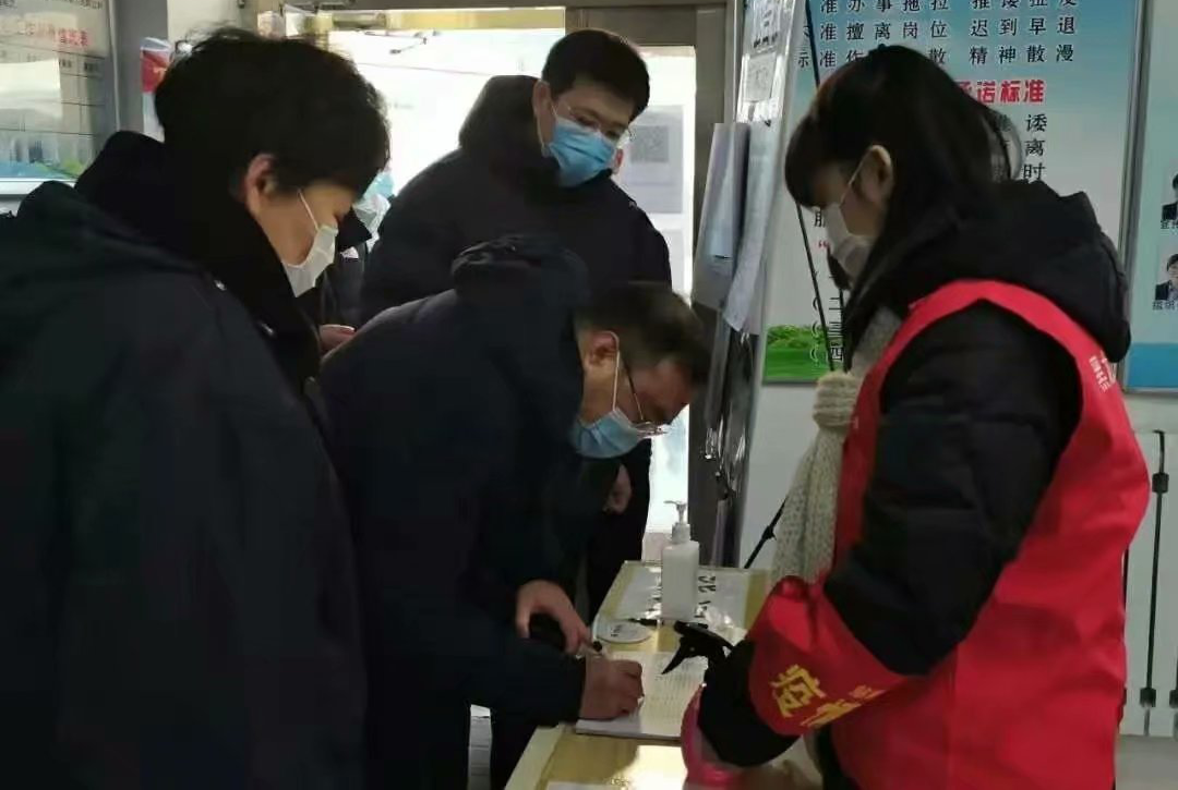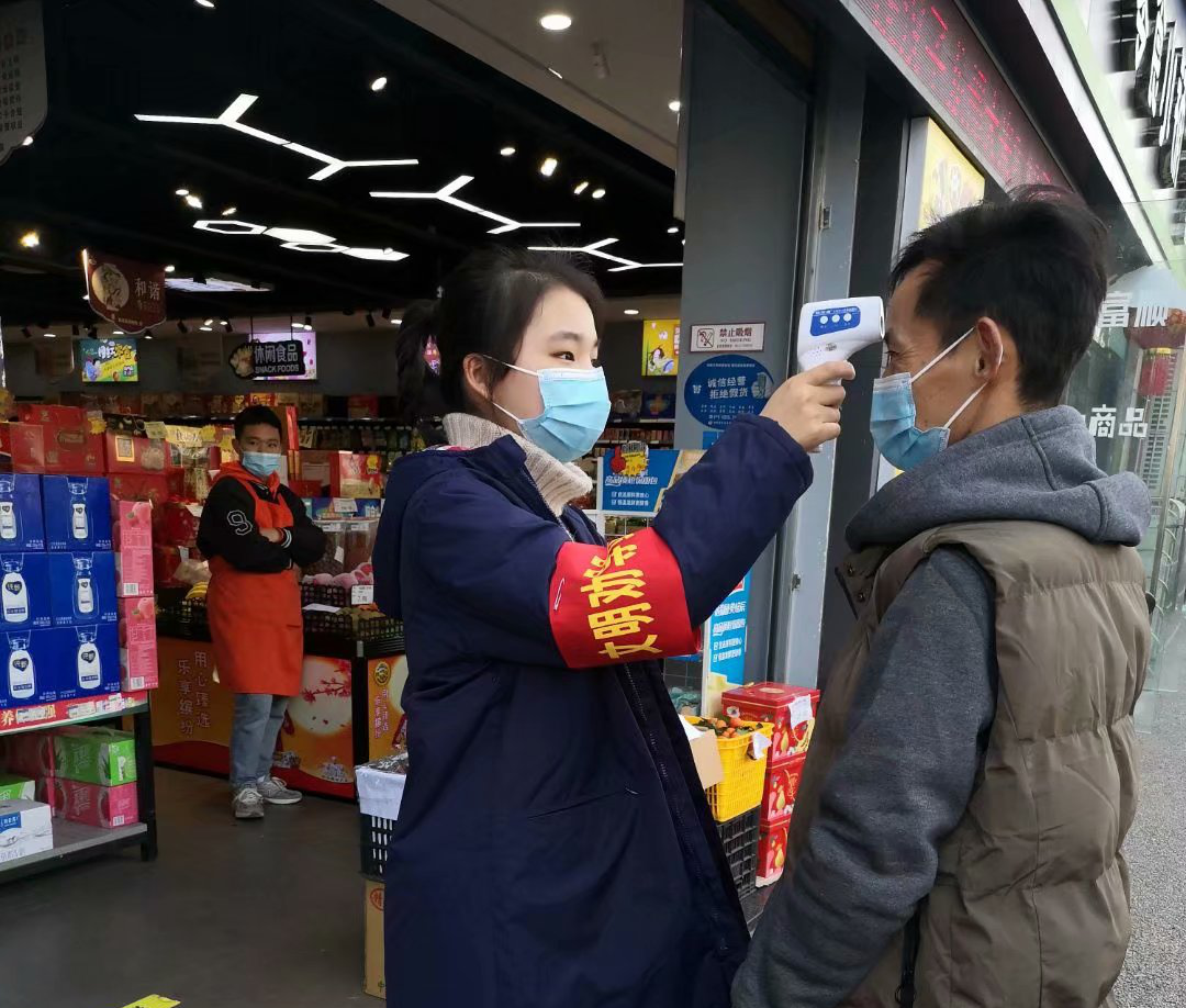 ▲ 協(xié)助社區(qū)開展入戶登記工作,為居民進行體溫監(jiān)測,并簽署居家承諾書。