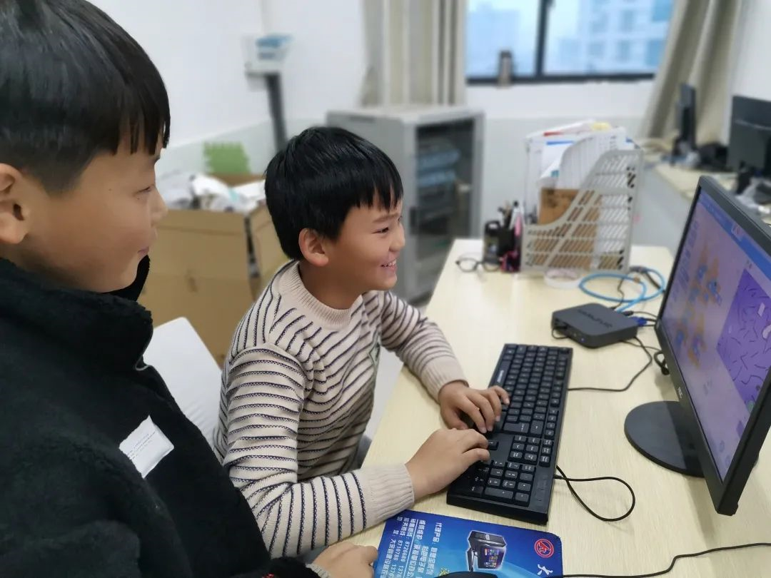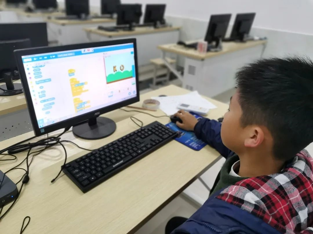 為了更好地提升學(xué)生的信息素養(yǎng),我校開設(shè)少兒編程大課堂,孩子們通過項(xiàng)目式開展和小組合作的方式,使用圖形化編程語言Scratch創(chuàng)作,理解順序、并行、重復(fù)結(jié)構(gòu)、偵測條件等計(jì)算思維中的重要基礎(chǔ)概念和算法知識,既鍛煉了邏輯思維能力和創(chuàng)新能力,也增強(qiáng)了其不斷試錯(cuò)和解決問題的能力。