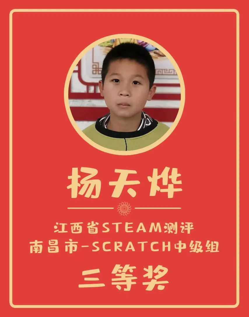 通過以賽促學(xué),以賽促教的方式,孩子們參加了由藍(lán)橋杯大賽組委會與美國普林斯頓多文化教育研究中心合作推出的青少年編程比賽(江西省STEAM測評-南昌市-Scratch初級組和中級組),并取得優(yōu)異成績,有7人獲獎(jiǎng)并成功進(jìn)入省決賽,期待孩子們下一輪更深入的切磋交流。