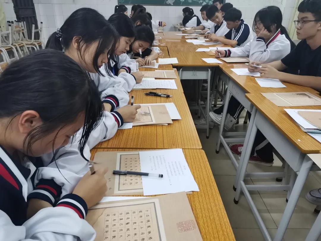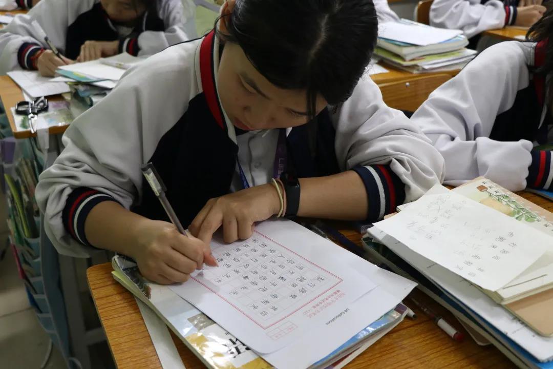 在初賽環(huán)節(jié),班級(jí)是練場(chǎng),也是賽場(chǎng)。同學(xué)們?cè)诮拥奖荣愅ㄖ?,認(rèn)真練字,摩拳擦掌。